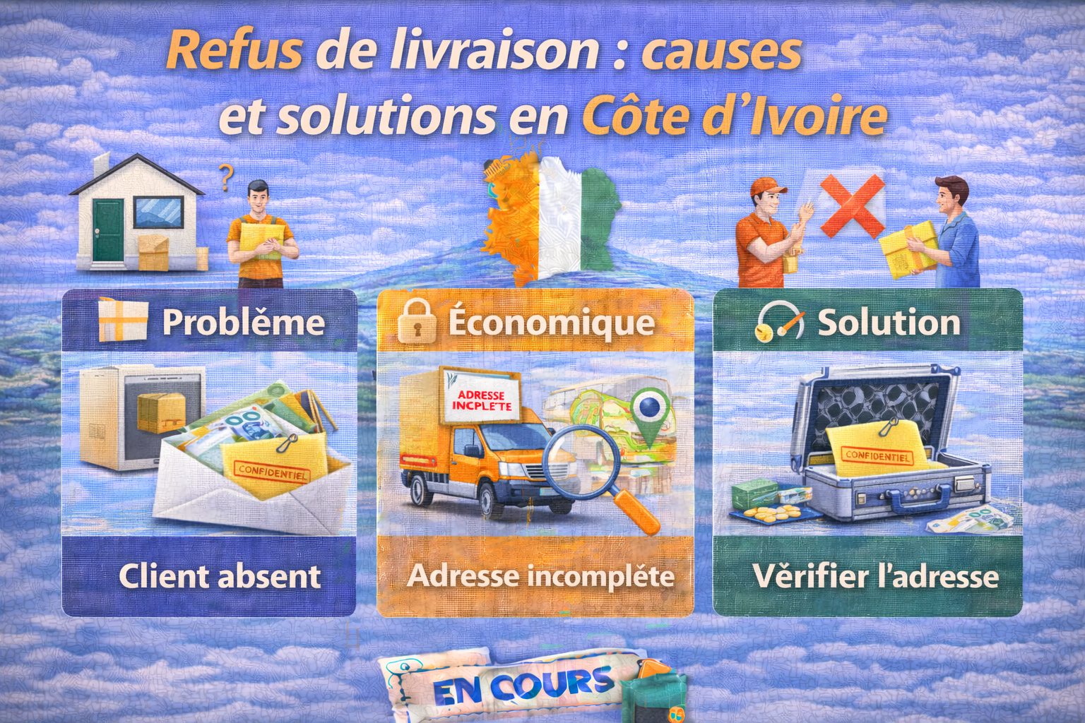 Un refus de livraison peut survenir même lorsque le colis est bien arrivé en Côte d’Ivoire. Cette situation n’est pas forcément définitive : dans la majorité des cas, le colis peut être reprogrammé, retiré en agence ou livré après régularisation.